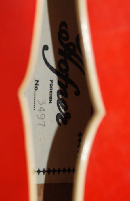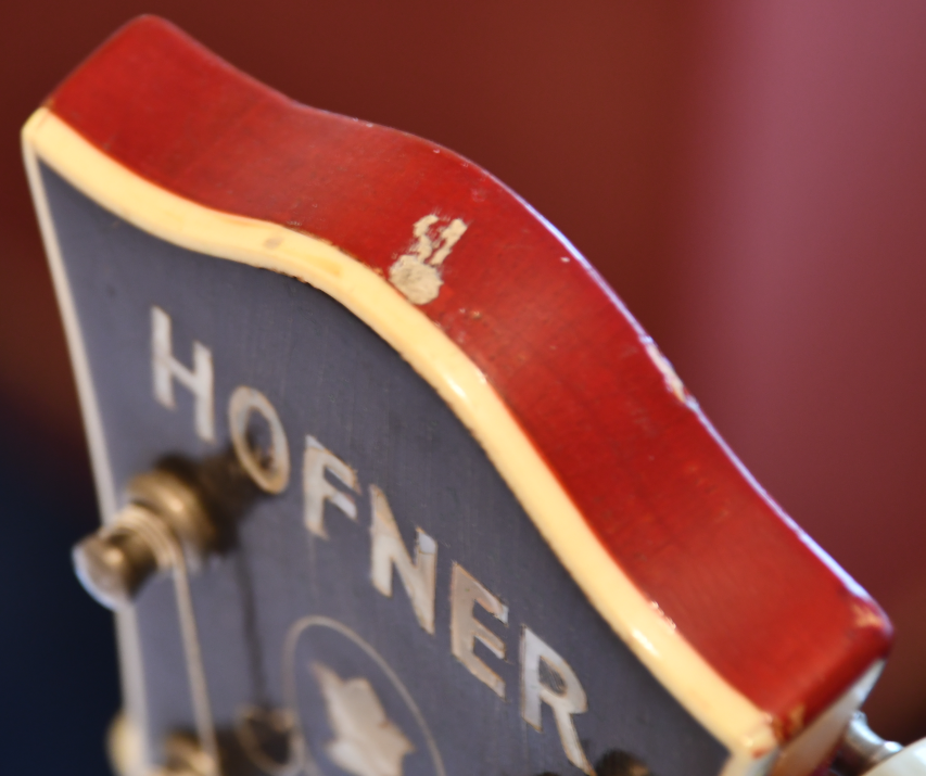 4 There are slight marks indentations at the edge of the bridge (on both sides) where the original aluminium bridge sat; this was replaced some time ago, when the current ‘roller’ bridge replaced the original knife edge ‘rocker’. As you will be aware the original Hofner bridge had fixed intonation which was unsatisfactory for accurate tuning.
