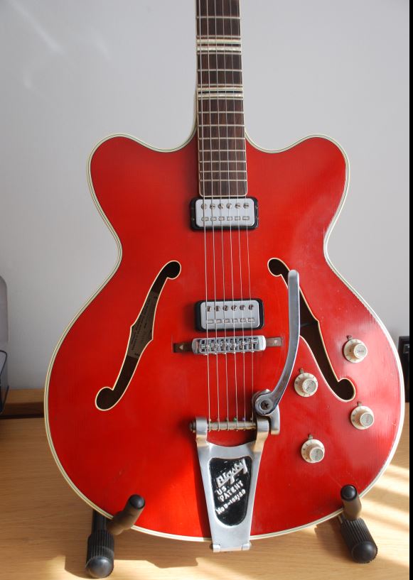 The guitar was bought in the mid-sixties, in a swap deal for my Hofner Colorama solid. It has not seen more that 40 minutes playing time in the last 40 years, set aside for various Ibanez models.